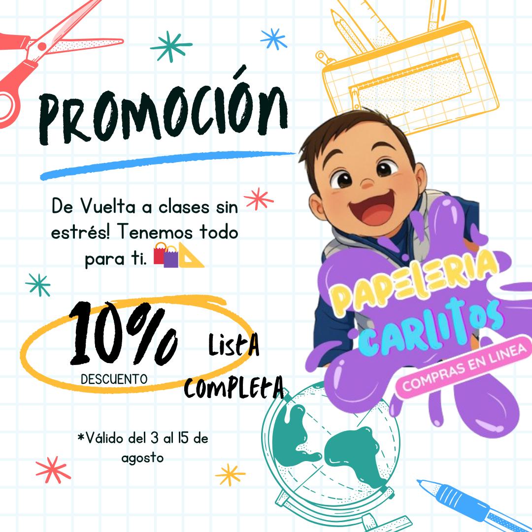 "Carlitos Papelería te lo pone fácil: llévate un 10% de inspiración gratis."